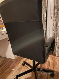 Sedia da scrivania Ikea, nera. Con rotelle, altezza e schienale regolabile, braccioli fissi. Usata poco.