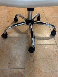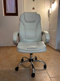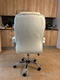 Vendo sedia da ufficio ergonomica in ecopelle bianca, dotata di meccanismo di regolazione in altezza perfettamente funzionante: fluido, stabile e resistente, consente di adattare la sedia alla postura ideale con facilità. Base girevole a 360° con ruote piroettanti in metallo cromato, per spostamenti agevoli e silenziosi.