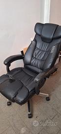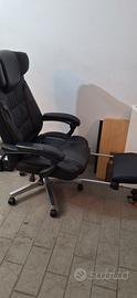 Sedia da ufficio in ecopelle. Rivestimento rovinato ma i meccanismi della sedia sono completamente funzionanti. Reclinabile e con poggia piedi