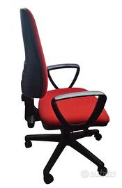 Vendo Sedia ufficio/operativa rossa in tessuto ergonomica – con braccioli, schienale alto regolabile, pistone a gas e base con 5 ruote in ottime condizioni.