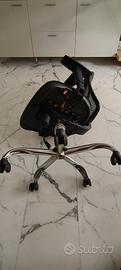 Sedia da ufficio in tessuto regolabile e girevole con poggiatesta e supporto lombare, poggia braccia regolabili di colore nero. Poggia schiena traforato