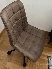 Regolabile in altezza (tra 38 e 51 cm), rivestita in morbidissima similpelle opaca antipelucchi. Seduta ergonomica, con 5 rotelle, molto stabile, leggerissima (6.7 kg) e ben rifinita, sostiene fino a 120 kg. Profondità seduta 42 cm, Altezza schienale 44 cm, Larghezza totale 53 cm. Diametro telaio 60 cm. TRATTABILE