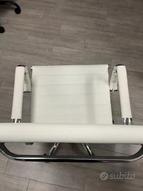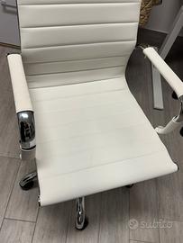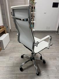 SEDIA DA UFFICIO ALESSANDRA IN SIMILPELLE ERGONOMICA CON SCHIENALE ALTO E SUPPORTO LOMBARE, POLTRONA DA SCRIVANIA GIREVOLE CON ALTEZZA REGOLABILE A GAS E ROTELLE GIREVOLI A 360°, BASE CROMATA (BIANCA)