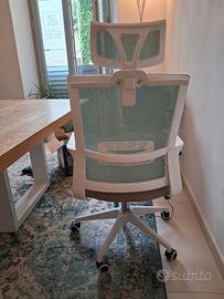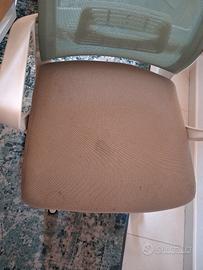 sedia da ufficio, beige e verde menta, struttura bianca, ha una macchia sulla seduta come da fotografia