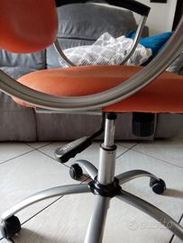 sedia girevole con possibilità di regolazione schienale, 5 rotelle per un ottima stabilità in finta pelle colore arancione con braccioli