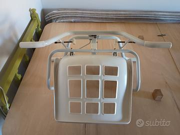 vendiamo sedia per persone con difficoltà motorie per fare il bagno nella vasca, la sedia è girevole per praticità motorie. La sedia è stata usata poco e tenuta bene le foto sono a dimostrazione dello stato di conservazione.