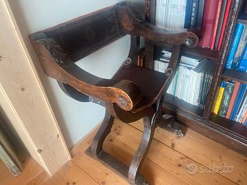 Inizio ‘900 Restaurata e con antitarlo iin buone condizioni Sedile in cuoio Poggiaschiena in cuoio lavorato