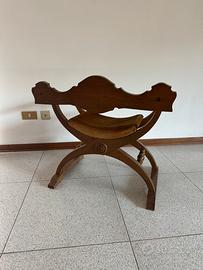 Elegante sedia in stile rinascimentale “Savonarola”, realizzata in legno massiccio con finitura naturale e decorazioni scolpite.