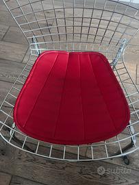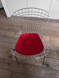 Vendo sedia dal design moderno e minimale, realizzata in metallo cromato con struttura a griglia. Il sedile è dotato di un cuscino rosso in ecopelle (rimovibile), che aggiunge un tocco di colore e comfort. IMITAZIONE BERTOIA Ideale per arredare cucine, soggiorni o studi dal gusto contemporaneo. Condizioni: ottime, usata pochissimo. Materiale: metallo cromato Colore: argento con cuscino rosso