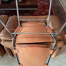 Sedia Les arcs di Charlotte Perriand - Dal Vera. Usura delle cuciture dello schienale, ma poco utilizzata. Placcatura in cromo quasi perfetta della struttura. Materiali: cuoio in Pelle, Acciaio argento. Spedizione a carico dell'acquirente.