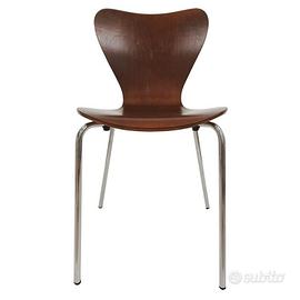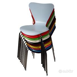 Il prezzo si riferisce ad una sedia. RICHIEDETE LA DISPONIBILITA' DELLA FINITURA E QUANTITATIVO DESIDERATO PRIME DI EFFETTUARE L'ACQUISTO. Sedia su disegno originale di Jacobsen. Struttura tubolare cromata a 4 gambe.