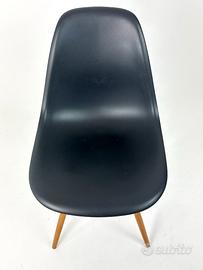 Sedia Vitra DSW color nero. Presenta la famosa base con gambe in legno e in filo di acciaio che combina forme leggere ed eleganti con resistenza strutturale; La scocca è in plastica nera, dalla forma organica che permette di adattarsi a una vasta gamma di esigenze e preferenze individuali. In buone condizioni, come da foto.