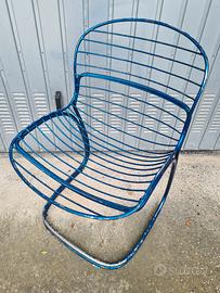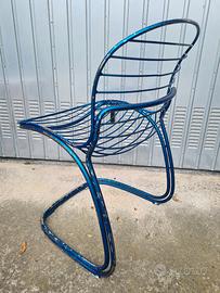 Sedia di design. Dovrebbe trattarsi di sedia Sabrina, di Gastone Rinaldi. Il colore blu, come si vede nelle foto, si è in parte staccato. No spedizione. Solo visione e consegna diretta in zona Novara.
