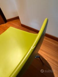 In ottime condizioni, una piccola scheggiatura sulla seduta e due lievi segni bianchi sul bordo dello schienale e uno all’estremitá della seduta (come da ultime due foto).
