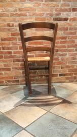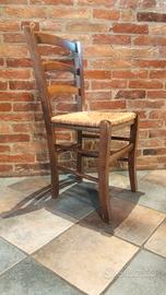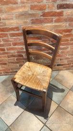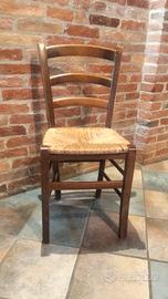 Robustissima sedia di legno con seduta in paglia. Non traballano, non hanno nessun tipo di gioco e scricchiolio. Per renderle perfette, hanno bisogno di una mano di impregnante o cera. Cambio per rinnovo dei locali.