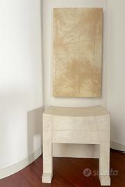 Dilmos Milano – Sedia Scomposta La Sedia Scomposta di Dilmos Milano rappresenta un incontro tra design concettuale e scultura funzionale, offrendo un’interpretazione radicale della forma e della funzione di una sedia. Realizzata in due elementi distinti – seduta e schienale – separa volutamente le parti tradizionali, ridefinendo il rapporto tra corpo, oggetto e spazio. La seduta, in legno rivestito con tela resinata, poggia liberamente nello spazio, mentre lo schienale, in poliuretano rivestito nello stesso materiale, è progettato per essere fissato a parete. Questa soluzione progettuale crea un dialogo visivo e fisico unico, trasformando l’atto del sedersi in un’esperienza sensoriale e concettuale. Fondata a Milano nel 1980, Dilmos è una galleria di design che opera al confine tra arte e arredo, specializzata in pezzi unici e serie limitate, selezionati per la loro forza narrativa e capacità di esprimere una visione progettuale distintiva. Caratteristiche tecniche: Seduta: Legno rivestito in tela resinata Dimensioni: 43 × 33 × H 44 cm Schienale: Poliuretano rivestito in tela resinata, da fissare a parete Dimensioni: 43 × 6 × H 81 cm Un oggetto pensato per collezionisti, architetti e appassionati di design, capace di superare la semplice funzione per diventare una dichiarazione estetica e culturale negli spazi contemporanei.