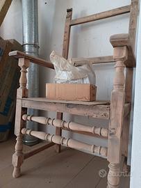 Sedia dirigenziale proveniente da uffici comunali. Risalente al secolo scorso, buone condizioni, necessita della seduta (sono presenti le sue molle originali). La sedia è già stata scartata a legno, quindi si può già trattare a finire. Prezzo trattabile