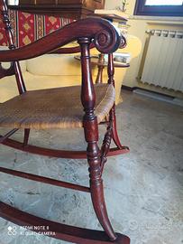 splendida sedia a dondolo Chiavarina, prodotta a Chiavari da Biggio e De Benedetti nei primi anni 50 del secolo scorso perfettamente stabile e conservata in tutte le sue parti, seduta compresa.
