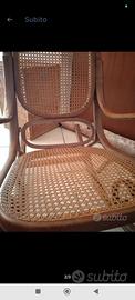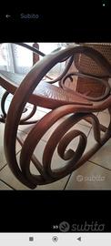 Sedia a dondolo vintage degli anni 80 in legno e paglia di Vienna, perfetta come nuova. Misure di ingombro lunghezza 100cm, seduta 45x55 cm, schienale alto 55 cm, altezza totale 100cm. Utilizzata solo per decorazione della stanza. Posso spedire perché al momento è stata smontata. Prezzo Regalo!!!