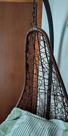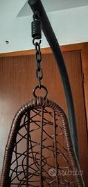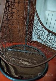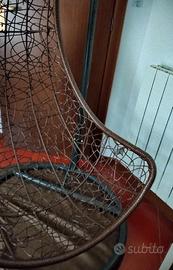 Poltrona dondolo sospesa, usata pochissimo. Base rotonda diametro 95 cm in acciaio carbonato, intreccio rattan. Senza cuscino. Buone condizioni, resistente. Vendo metà prezzo per inutilizzo. Smontabile per trasporto in 3 parti.