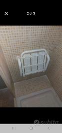 Sedia pieghevole a muro e maniglione per interno doccia adatto a persone con difficoltà motoria.
