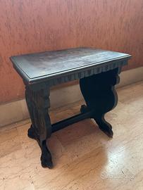 Sedia bassa da camino e sgabello / tavolino in legno, artigianato di montagna. Buone condizioni vintage, hanno circa 30 anni. Prezzo comprensivo di entrambi