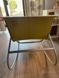 La struttura è stata ripristinata e riverniciata a fuoco in color grigio topo chiamo, la fodera era stata rotta del precedente proprietario ma è stata portata in tintoria e dalla sarta per salvarla il piu possibile, in commercino ci sono per pochi euro fodere nuove in buone condizioni. Vendo per trasloco