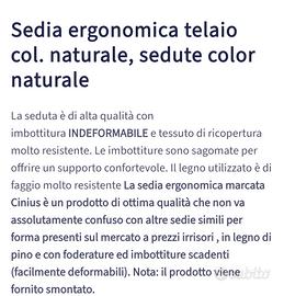 Sedia ergonomica marca Cinius, colore naturale, materiale in legno di faggio, molto resistente .Ideale per chi lavora seduto, aiuta a mantenere la posizione corretta della spina dorsale, l' inclinazione è regolabile. Ottima qualità, imbottitura perfetta. Praticamente come nuova, usata pochissimo.