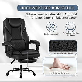 Sedia SCHWARZ ergonomica da capo con poggiapiedi e cuscino lombare, corrimano mobile, similpelle, 300 libbre (nero)Sedia da ufficio in pelle: morbida pelle PU e doppio cuscino di seduta in schiuma che avvolge tutto il corpo. Resistente a graffi, macchie, desquamazione e screpolature, non sbiadisce dopo un uso prolungato ed è facile da pulire. Adatta a casa, ufficio, sala riunioni, sala ricevimenti e altri luoghi, la sedia da ufficio ha una migliore resistenza e garantisce una seduta confortevole per lungo tempo.