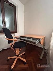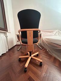 Sedia da uffucio, studio regolabile e con ruote della ditta “Moll” (Made in Germany) in tessuto nero legno di Faggio scruro. Possiedo amche scrivania in coordinato. Vedi altro annuncio