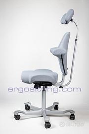 Ispirata alla caratteristica postura dei cavallerizzi, questa sedia da ufficio presenta seduta a forma di sella che favorisce il movimento ed il cambio di posizione per una seduta sempre attiva.