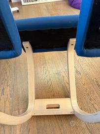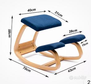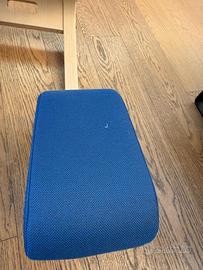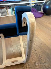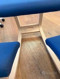 Sedia ergonomica Varier. Colore blu in tessuto. Struttura in legno.