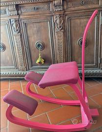 Vendo sedia Varier modello Variable (ex Stokke) completa di schienale in legno. È la sedia basculante originale che permette la seduta attiva, ideale per chi soffre di mal di schiena stando molto tempo al computer o alla scrivania. La sedia è strutturalmente perfetta e il legno è solido, senza difetti. Il tessuto è di colore rosa fucsia: non ha strappi, ma essendo usata ha bisogno di una pulita per far tornare il colore vivido come all'inizio (ne tengo conto nel prezzo). Lo schienale è in legno, molto comodo per appoggiarsi nei momenti di pausa senza perdere la postura corretta. Non è la solita imitazione da pochi euro, è un pezzo di design che dura una vita. La vendo solo perché ho cambiato setup della mia postazione smart working.