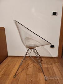 Sedia di design Eros di Philippe Starck per Kartell Seduta policarbonato trasparente Basamento struttura a 4 piedi in acciaio cromato