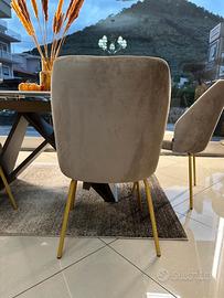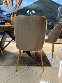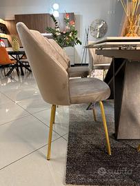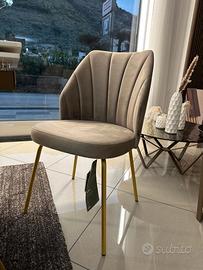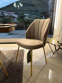 Sedia Flower dal Design elegante e ricercato , la sua forma richiama appunto quella di un fiore . Rivestimento in morbido velluto antimacchia e idrorepellente color sabbia , basamento in metallo oro ____________________________________________________ Per qualsiasi info siamo a disposizione ai numeri: - Mostra numero -Mostra numero anche whatsapp