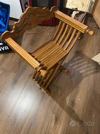 Sedia a Forbice "Savonarola" Vintage in Legno Intagliato