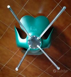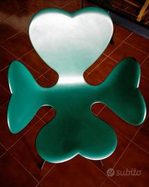 Sedia a forma di quadrifoglio, realizzata in un poliuretano particolare verniciato color verde. Ha gambe esili e flessuose, in acciaio cromato.