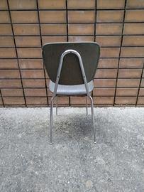 Sedia francese da scrivania anni ’60 imbottita in finto coccodrillo color grigio/verde con gambe in acciaio cromato. Sono presenti lievi segni del tempo. Zona Montesacro. Misure: H. 45 cm seduta (82 cm schienale) - L. 40 cm - P. 35 cm