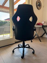 Vendo per inutilizzo. In ottime condizioni. Seduta ergonomica. Schienale e seduta imbottite. Richiamo stile gaming. Braccioli poggia braccio imbottiti. Seduta basculante. Girevole 360°. Pompa idraulica per regolazione altezza.