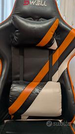 Vendo sedia da gaming ergonomica colore nero/arancio con dettagli bianchi, completa di:
