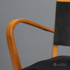 Seduta girevole con struttura in legno, seduta e schienale in skai nero.