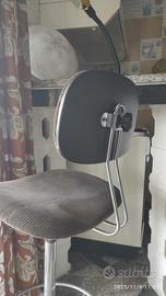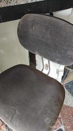 La seduta con schienale è imbottita e rivestita in velluto a costine marrone e consente la rotazione a 360°. L'altezza dello schienale è regolabile.