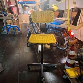 Se stai cercando un tocco vintage per il tuo arredamento, la Sedia girevole da bistrot intrecciata anni 70 è la scelta perfetta. Realizzata in ferro e con un intreccio in fettuccia di plastica gialla, questa sedia aggiungerà un tocco retrò e accogliente al tuo spazio. Le rotelle la rendono facilmente spostabile, perfetta per un angolo bar o come sedia da lavoro. Con il suo design eclettico e unico, questa sedia è un'aggiunta accattivante a qualsiasi ambiente. Dona un tocco di classe vintage alla tua casa o al tuo spazio commerciale con questa splendida sedia bistrot.