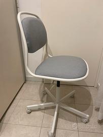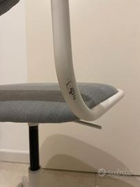 Sedia girevole da scrivania, regolabile in altezza grazie alla maniglia: cuscini color grigio. Presenta un piccolo graffio posteriore come indicato da foto.