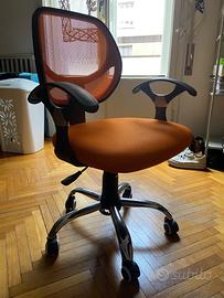 Sedia da scrivania, girevole, con rotelle. Colore arancione