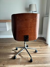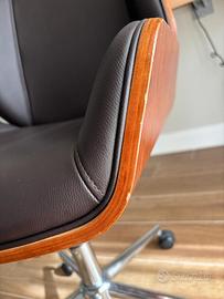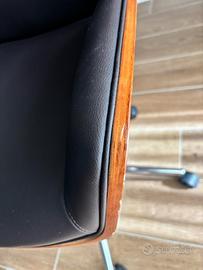 Seduta in simil pelle nera con scocca in legno. Altezza regolabile tramite pistone. Unici difetti quelli visibili nelle ultime due foto.