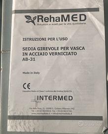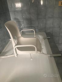 Vendo sedia girevole per vasca da bagno in acciaio verniciato, ideale per agevolare l’ingresso e l’uscita dalla vasca in totale comodità.