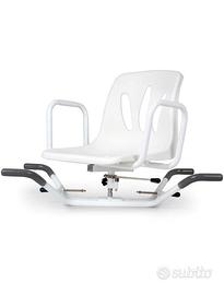 Sedia girevole per vasca . Consente a persone con mobilità ridotta di poter utilizzare la vasca da bagno come doccia. Si fa sedere la persona come se fosse una sedia e si fa ruotare in modo che la persona possa entrare in sicurezza all’interno della vasca da bagno . Facile da montare