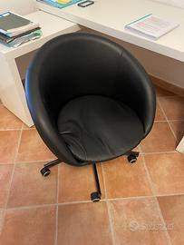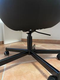 Vendo sedia girevole IKEA con seduta ampia e comoda, rivestita in ecopelle nera. Base a 5 razze con ruote scorrevoli e altezza regolabile. Design moderno e minimale, perfetta per studio, ufficio o camera.