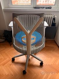Vendo sedia da ufficio o gaming della Herman Miller Sayl colore blu e bianco, perfetta, con accessorio per supporto lombare e braccioli regolabili